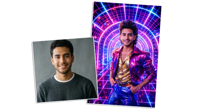 With our AI prompts, your photo booth becomes a dynamic neon tunnel filled with glowing lights, pulsating colors, and disco-inspired motion effects. Guests appear to move through endless retro corridors, surrounded by laser grids, disco balls, and colorful reflections, creating photos that are both interactive and unforgettable. Our prompts work flawlessly with Fotomaster, Darkroom, Snappic, Touchpix, and other popular photo booth software platforms.