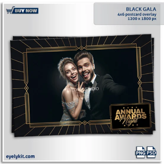 Black Gala Overlay. 1 landscape PHOTOS - 4x6 photo booth template.