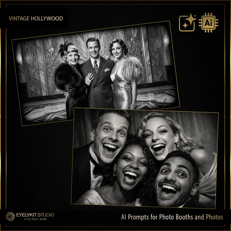 We understand that reliability is non-negotiable on-site. Our Classic Hollywood Glam AI Prompts are rigorously tested for compatibility with the leading software used by professionals today. We’ve optimized the syntax to ensure fast processing and high-fidelity output across all major platforms:: Compatible with Fotomaster, Darkroom, Snappic, Touchpix, and other popular photo booth software, these prompts deliver high-resolution, shareable images every time.