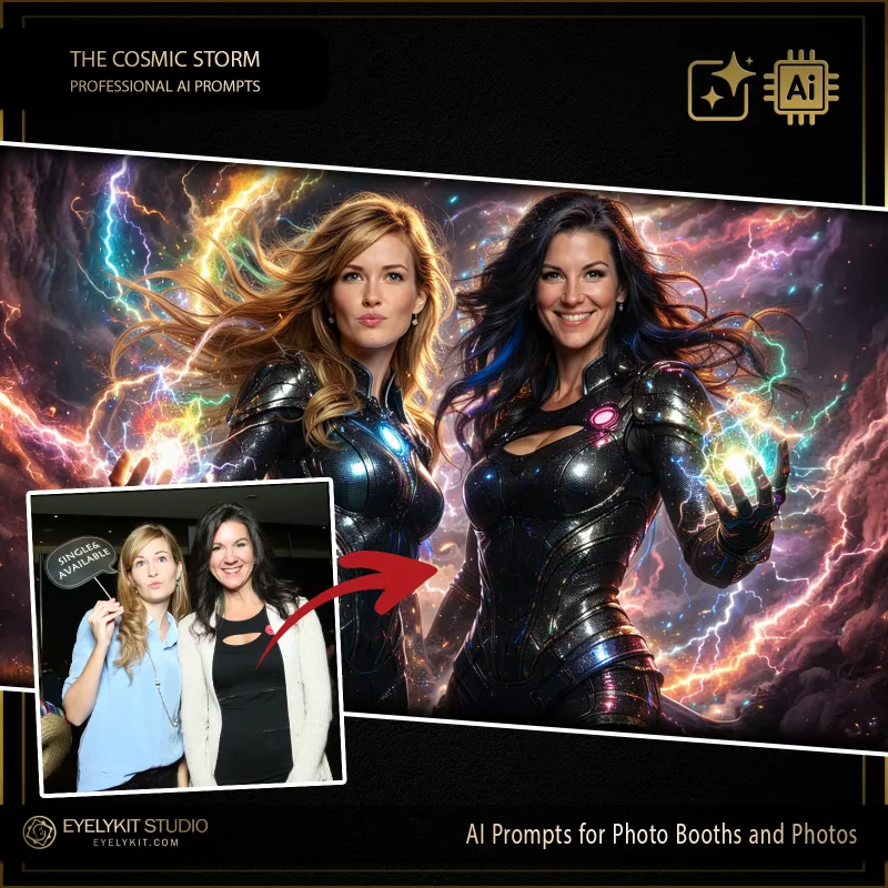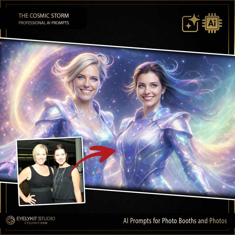 Our cosmic prompts for ai photo booths and for ai photos are professionally weighted technical asset designed to interact perfectly with the diffusion models used by the event industry’s leading software providers. We ensure your booth delivers consistent, breathtaking results regardless of your hardware