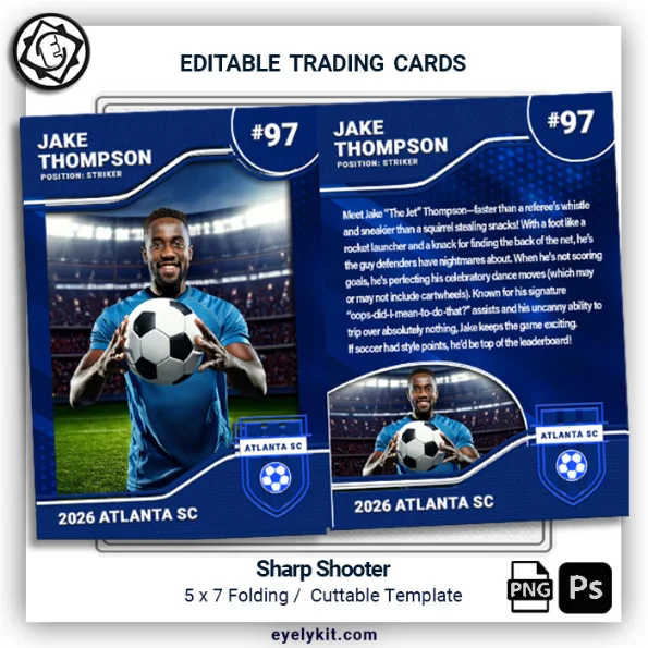 Our 5x7 sports trading card templates are flexible and can be folded to create a two-sided trading card or cut down to size for a classic trading card look. We also include editable 2.5 x 3.5 standard trading card files (both front and back) to give you multiple options for how you’d like to present your cards.
