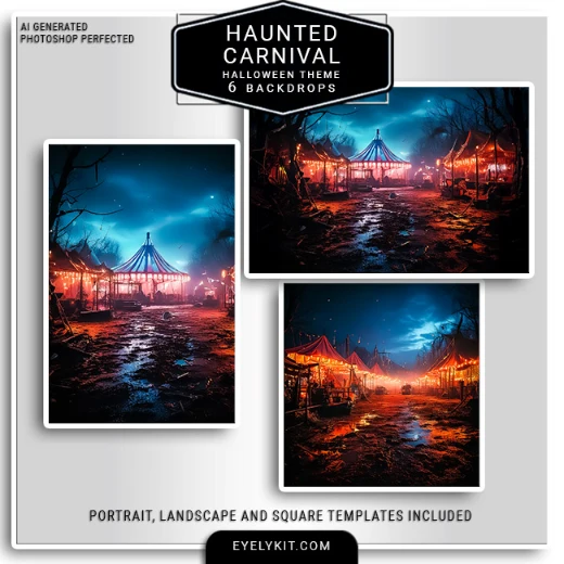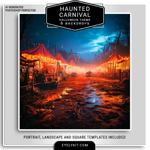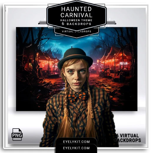 With Haunted Carnival Virtual Backdrops, your photo booth becomes a spooky spectacle of fun, fright, and fascination. This Halloween, don’t settle for ordinary—transform your booth into a chilling carnival that guests will remember (and share) long after the event. Upgrade your Halloween offerings today with Eyelykit’s Haunted Carnival Halloween Backdrops—and let the spooky fun begin.
