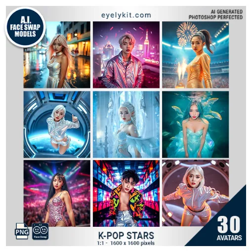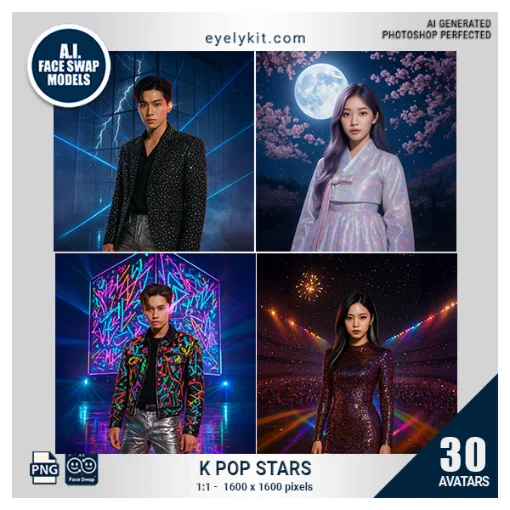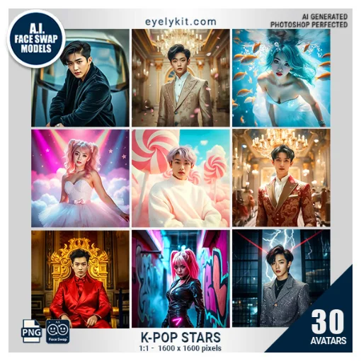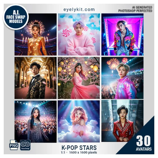 K-Pop Stars Face Swap Photo Booth Bundle – Transform Guests Into Idols. 30 amazing Face Swap Models.