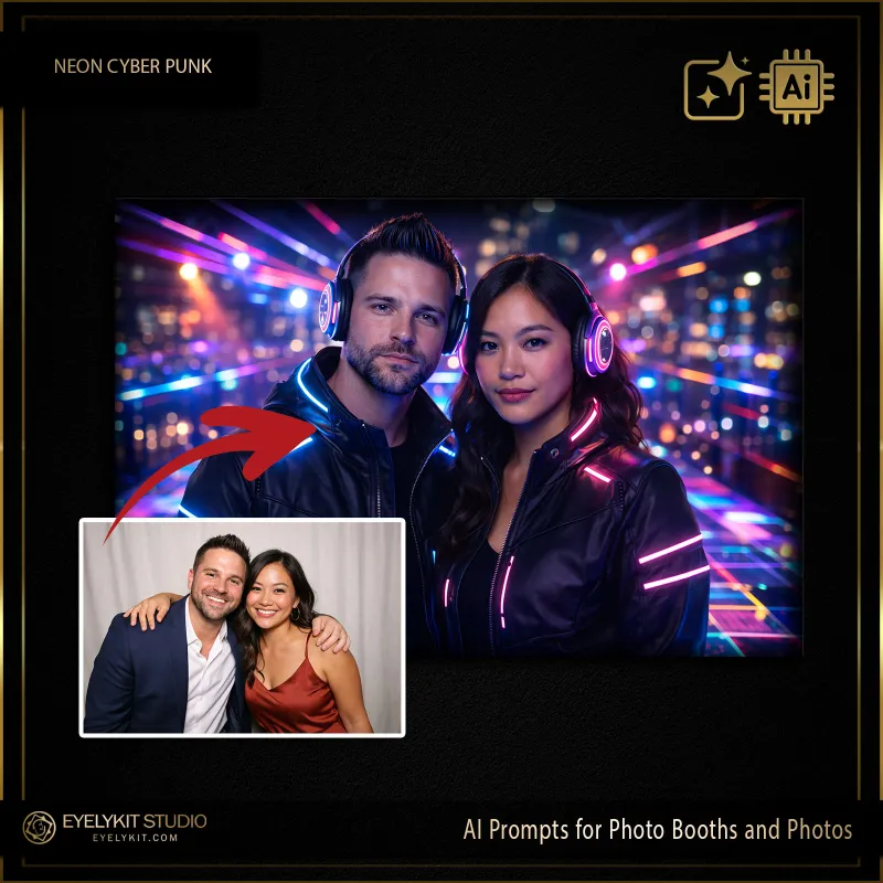neon cyber punk ai prompts for photo booths are not generic “chat” commands. They are professional-grade strings designed to work with the specific diffusion models used by the leading photo booth software providers.