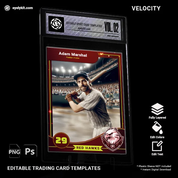 sports cards editable templates. Velocity. Create Custom Sports Trading Cards with Ease. Take your photo booth experience to the next level with our Sports Trading Cards editable Photoshop templates. Designed specifically for photo booth owners, but versatile enough for anyone to use, these templates allow you to create personalized sports trading cards that capture unforgettable moments. Whether you’re running a sports-themed party, school event, team banquet, or birthday celebration, these templates make it easy to produce professional-quality keepsakes your guests will treasure.