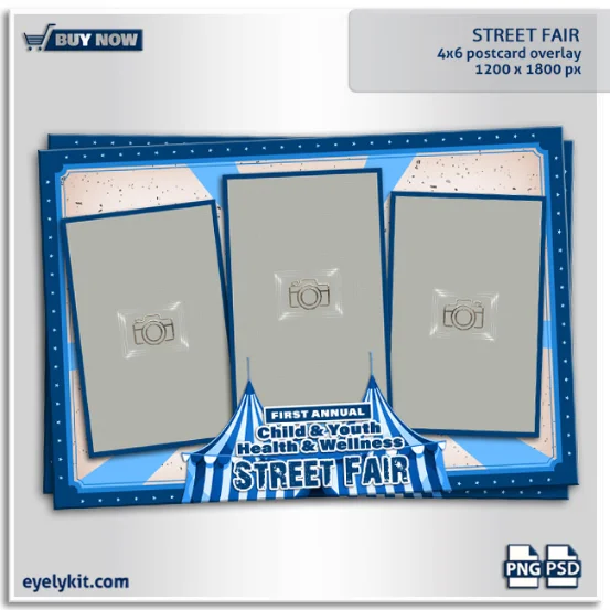 Street Fair Photo Booth Overlay – Fun & Vibrant Event Template. 3 portrait Photos, 4x6 overlay template.