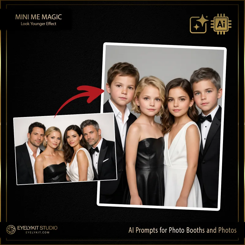 Elevate your AI-powered photo booth experiences with the Younger and Older AI Prompt Pack. This comprehensive collection is meticulously engineered for photo booth owners who want to offer their clients the latest in generative AI technology. Whether you are using the AI features in Foto Master, Snappic, or Darkroom, these younger and older ai prompts deliver “brilliant and stunning” results that consistently drive high social media engagement.